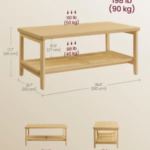 - [Robust and Reliable] With a premium MDF tabletop that’s strong enough to hold up to 110 lb, and a plastic rattan shelf that supports up to 88 lb, this coffee table is a reliable addition to your space. Feel free to display your books or decorations on it!