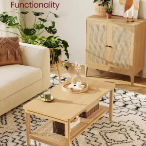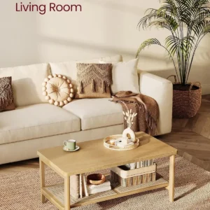 - [Embrace Boho Style] Featuring a light earthy hue and refined PVC rattan, this coffee table is a nod to bohemian aesthetics, breathing nature, texture, and good vibes into your space. It’s an artistic statement that enhances your space