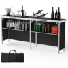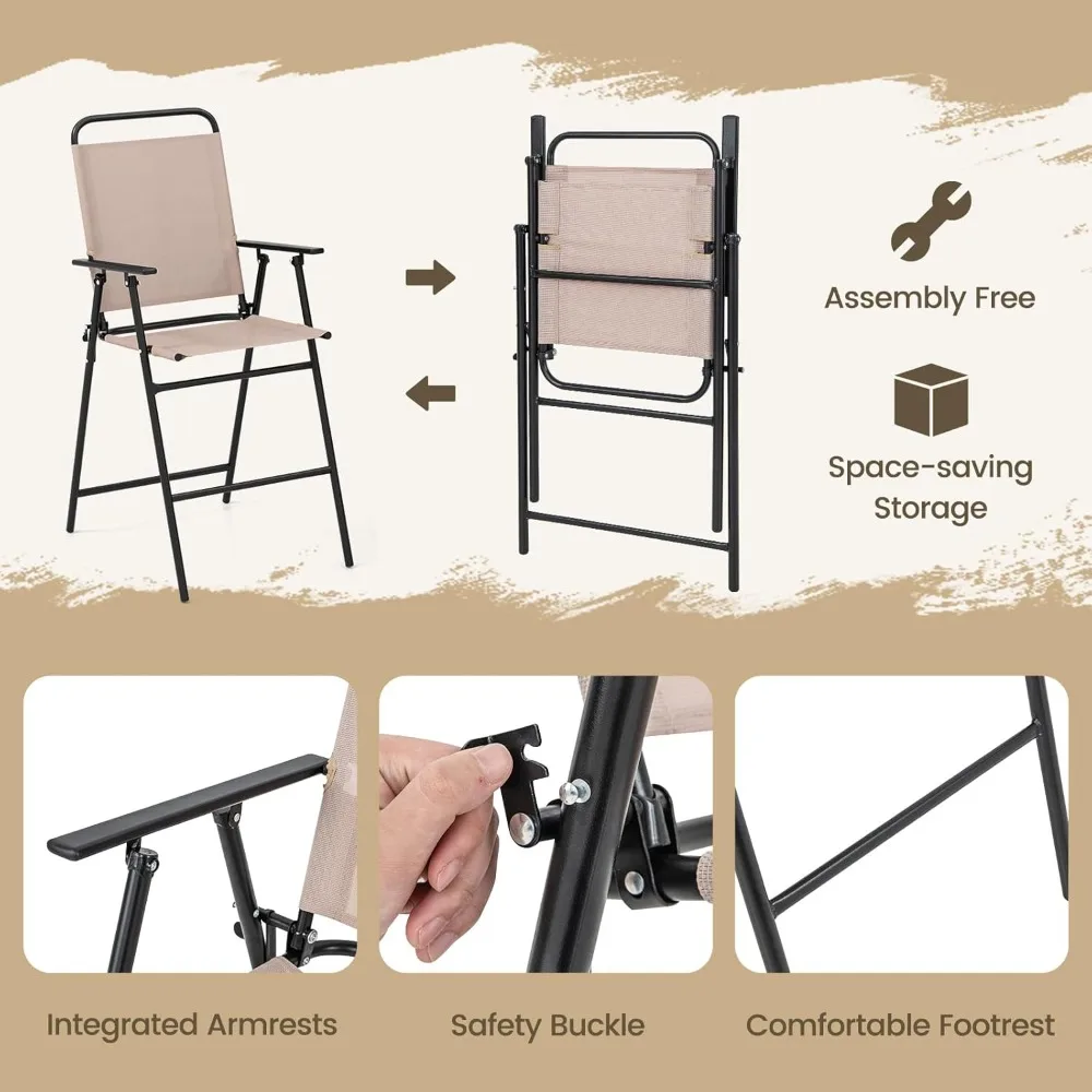 4-Piece Outdoor Bar Set, Round High Top Bar Table with 2 Folding Counter Height Chairs & Umbrella, Patio Bistro Table Set