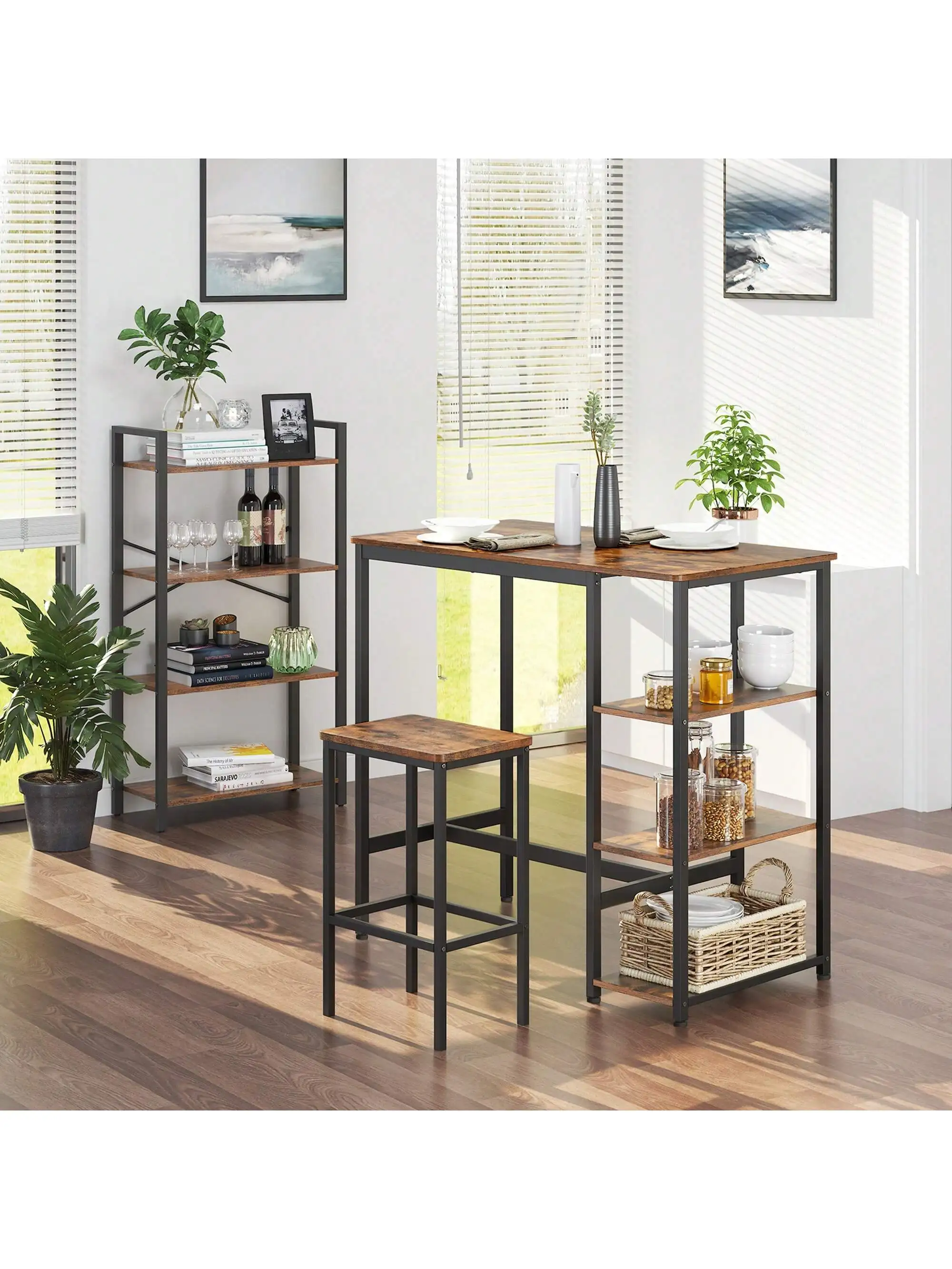 What an Appetizing Show: This bar table with 3 rustic brown engineered wood shelves adds an industrial touch to your dining area. Enjoy delicacies in a stylish atmosphere!